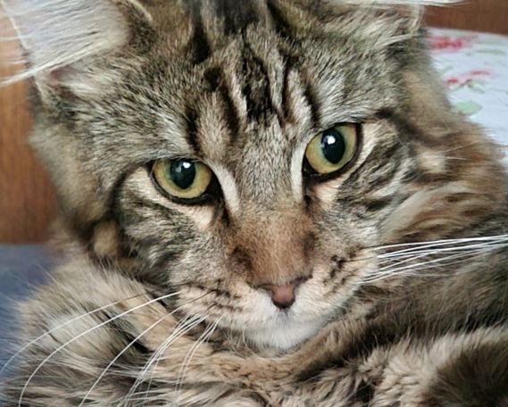 Eemil, das Caramel Bonbon, in einem bezauberndem und warmen black tabby kommt er daher, wie seine Schwester Rauni ist er ein absoluter Schmusebär. Er ist da auch sehr vehement, gerne liegt er direkt auf mir und fordert mich zum kuscheln und kraulen auf, dann stupst er mich mit seiner Pfote und einem erwartungsvollem Blick an,"los Frauchen, kraulen" heißt das, und ich, ich kraule ;)
