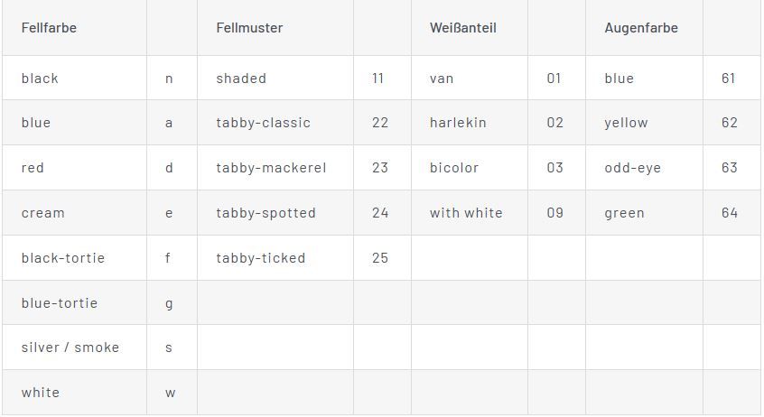 - Achtung, Wichtig! Es gibt verbotene Verpaarungen!!